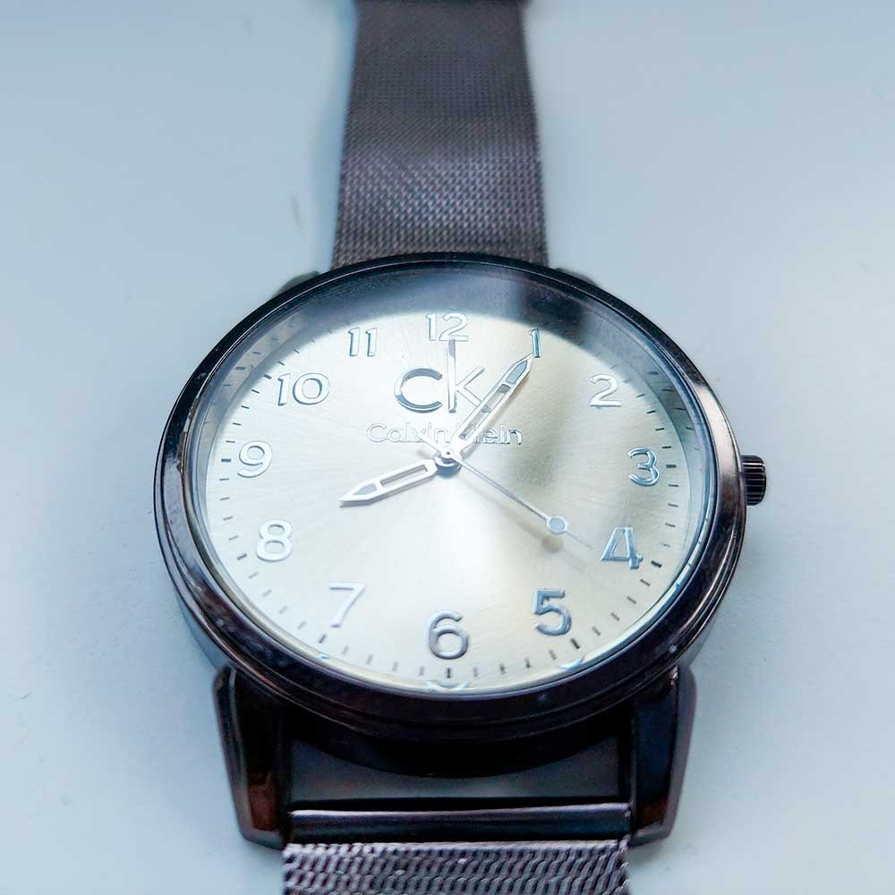 Haz tuyo este reloj vanguardista, cuenta con correa de metal y el estilo que caracteriza a Calvin Klein (réplica).